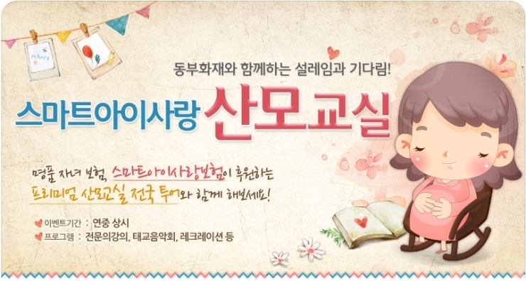 많은 분들의 열화와 같은 성원에 힘입어 올해도 동부화재가 [스마트 아이사랑 산모교실]을 준비중입니다.